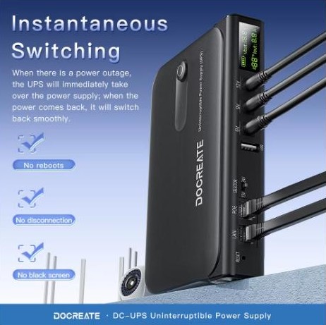 DC-UPS DC1036L - компактне джерело безперебійного живлення потужністю 36 Вт, призначене для забезпечення стабільної роботи мережного та телекомунікаційного обладнання при відключенні електроенергії. Ідеально підходить для роутерів, GPON ONU, модемів, IP-камер, комутаторів, NAS та іншого обладнання, що працює від постійної напруги.