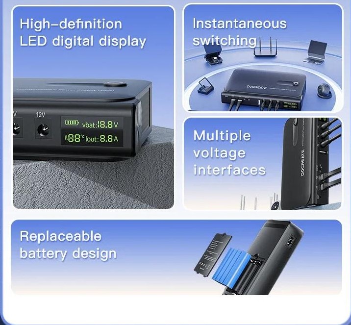 Модель оснащена цифровим LED-дисплеєм, який у реальному часі відображає напругу, струм, рівень заряду та робочі параметри пристрою. Завдяки функції миттєвого перемикання живлення підключеного обладнання продовжується без розриву з'єднання під час зникнення мережі.